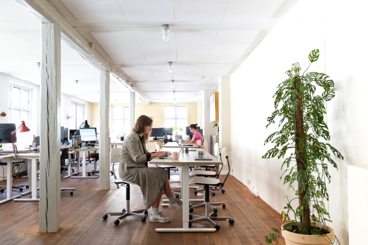 Inkluderet: Adgang til pladserne 24/7 og kaffe/te, internet, print (begrænset), mødelokalebooking, adgang til husets øvrige faciliteter samt én fælles månedlig morgenmad.