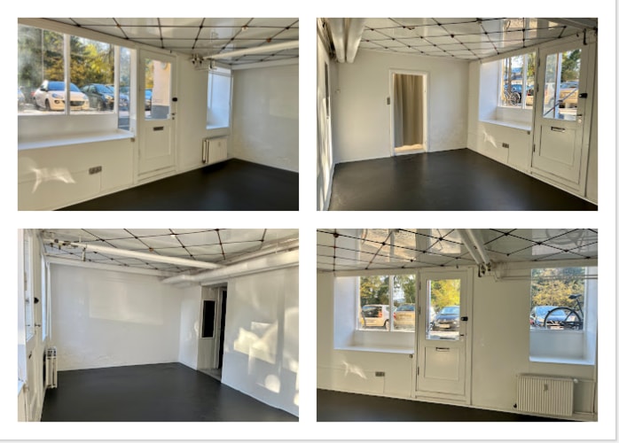 Lokalet er ca. 25 kvm. og velegnet som studio, kontor, atelier, showroom, værksted, butik.