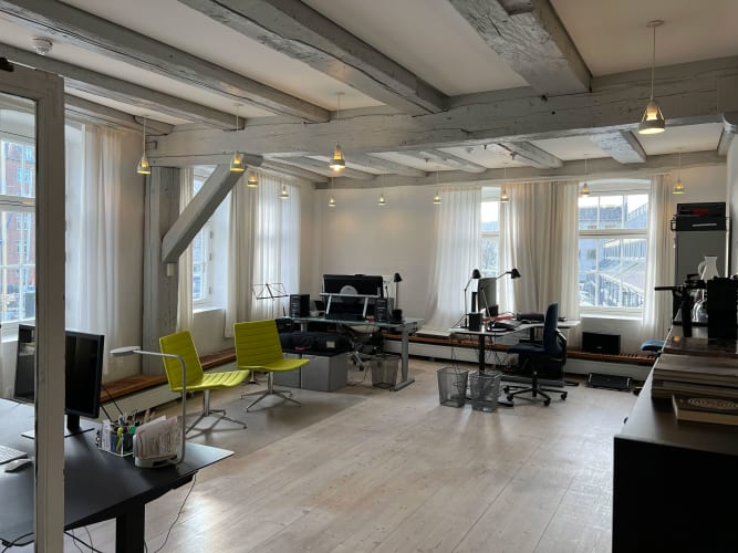 Vi søger tre medieperson der har lyst til at flytte ind hos os i vores kontorfællesskab på en helt exceptionel skøn location. Vi sidder i Det Arktiske Hus på Christianshavn, Strandgade 102, 1. sal med udsigt ud til kanalerne. Vi er pt. 2 selvstændige, en Motion Graphics Designer og instruktør samt Grafiske Designer med speciale i Digital Design. Der arbejdes med film, TV, grafik, kampagne og design samt konceptudvikling og tilrettelægning og vi har plads til dig. Er du grafiker, fotograf, tekstforfatter, designer, producer eller noget helt sjette indenfor mediebranchen og det kreative, så er det måske noget for dig. Vi kommer og går på forskellige tidspunkter, så der er arbejdsro. Pladsen inkluderer, fiber til hurtigt internet. Lejen er med alt - lys, vand, varme, alarm, tekøkken, skatter og afgifter, dørtelefon, fri cykelparkering og delvis bil parkering. Adgang til stort mødelokale med 70' fremvisningsskærm. Og et kanon godt medie naboskab samt måske samarbejde! Ud over os sidder der andre mediefolk. Vi er nabo til Noma's nye burger cafe plus mad markedet lige ved siden af.