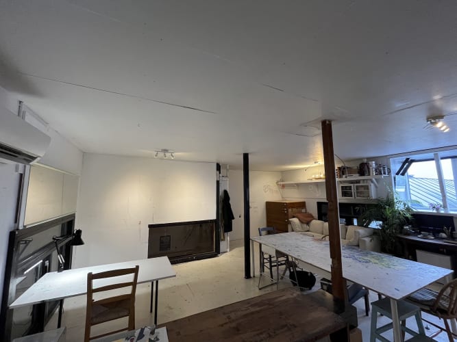 Plads ledig i skønt rum på Skabelonloftet på Refshaleøen.Det deles med en anden, du får din egen plads til indretning efter behov, derudover har vi et fælles arbejdsbord, gulvplads og sofa:) Desuden adgang til stort fællesrum med køkken. Passer godt til billedkunstner, maler, tegner, illustrator, fotograf, eller andre kreative projekter. Kontakt mig endelig hvis du er nysgerrig på at høre mere.