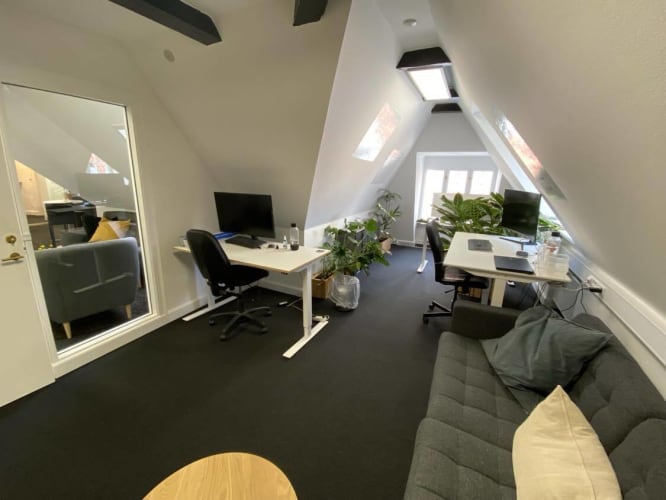 Kontoret er ca 17 kvm. og har plads til 3-4 personer.