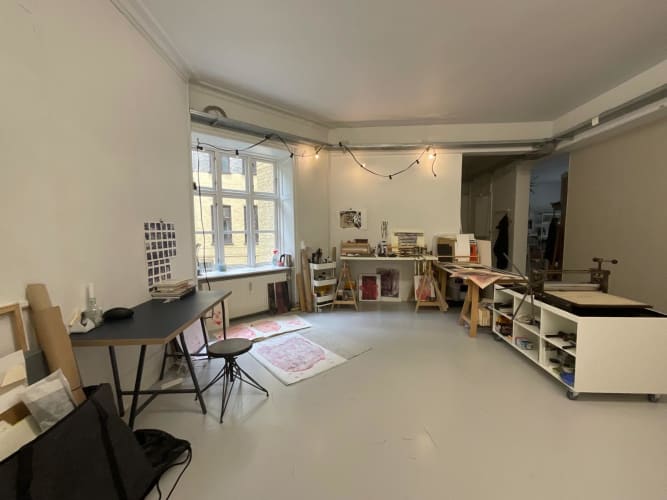 Vi har et ledigt atelier i StudioV50 på Vesterbrogade fra 1. januar 2025. Rummet er 25 m2 med højt til loftet og centralt beliggende på Vesterbrogade, med vindue til en rolig gård, fuld af planter og et magnoliatræ, samt adgang til fælles køkken, toilet og skøn tagterasse.