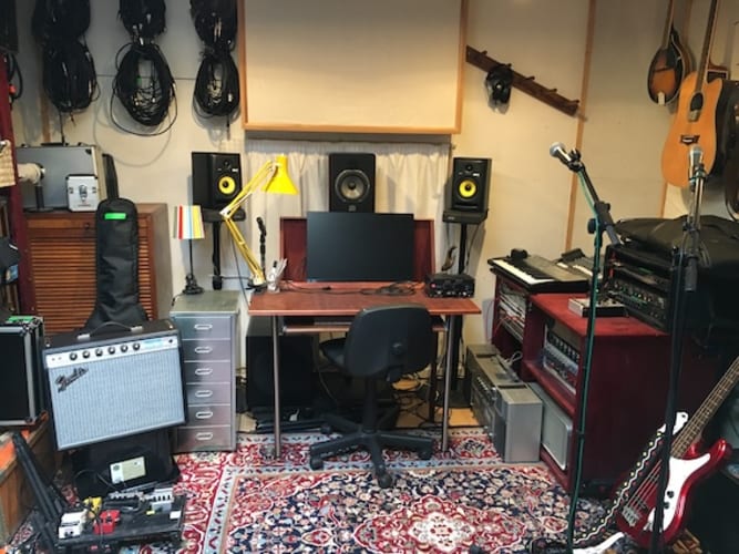 Studiet ligger i Vanløse,18m2,møbleret, med ovenlysvinduer. Fuldt lydisoleret og akustik beregnet af E.B. Brixen. Det er en del af et hus med 4 andre professionelle lydstudier. Her er et hyggeligt gårdmiljø, samt et fælles køkken/opholdsrum og toiletter. Studiet indeholder lydteknisk udstyr, instrumenter, forstærkere og trommesæt mm. Evt. brug af det kan vi aftale.