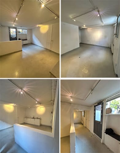 2 dejlige sammenhængende lokaler - det ene med et rum i rummet til evt opmagasinering og det andet med køkken faciliteter.. i alt 46,5 km2
